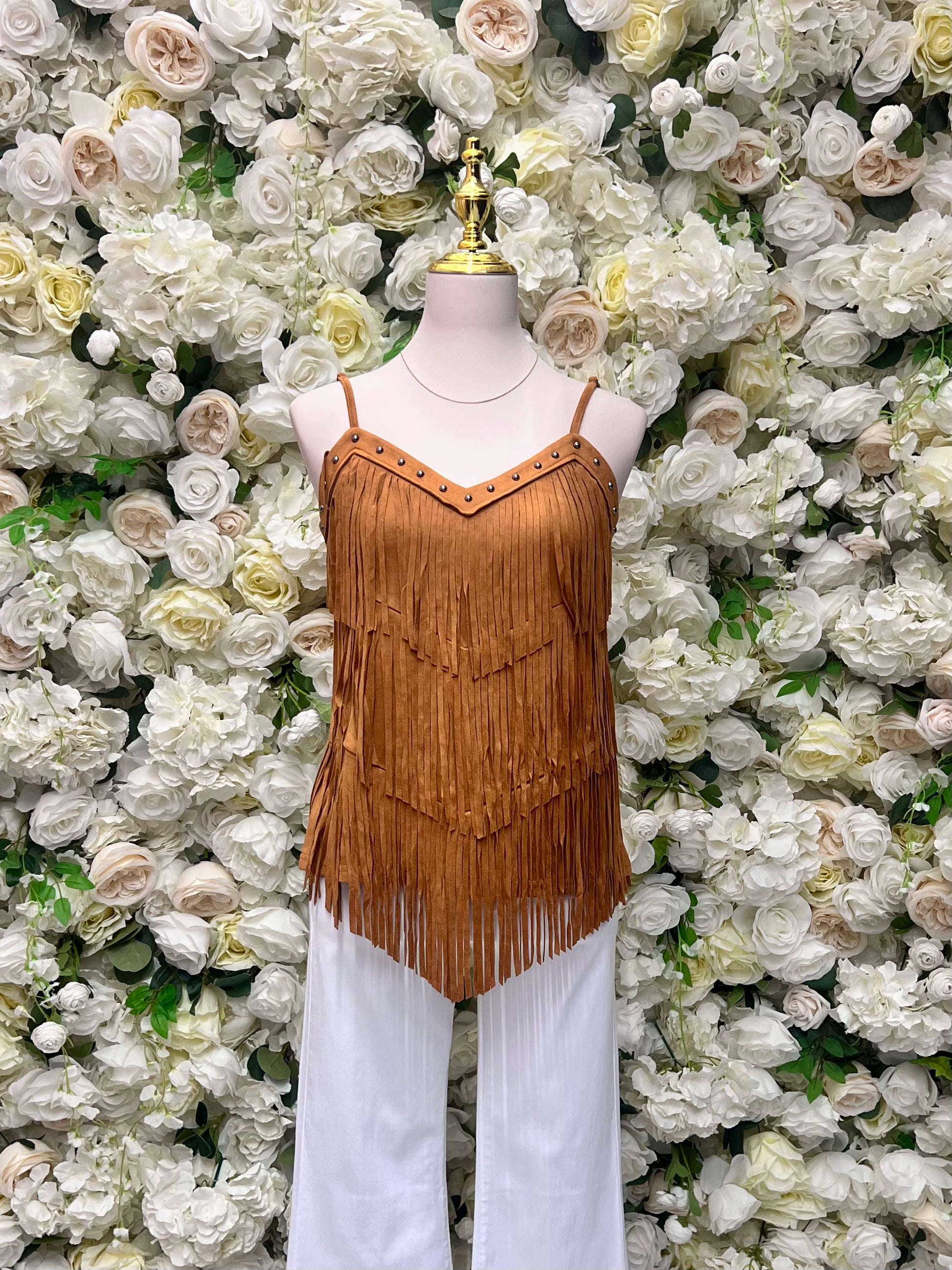 Camel Fringe Tank Top